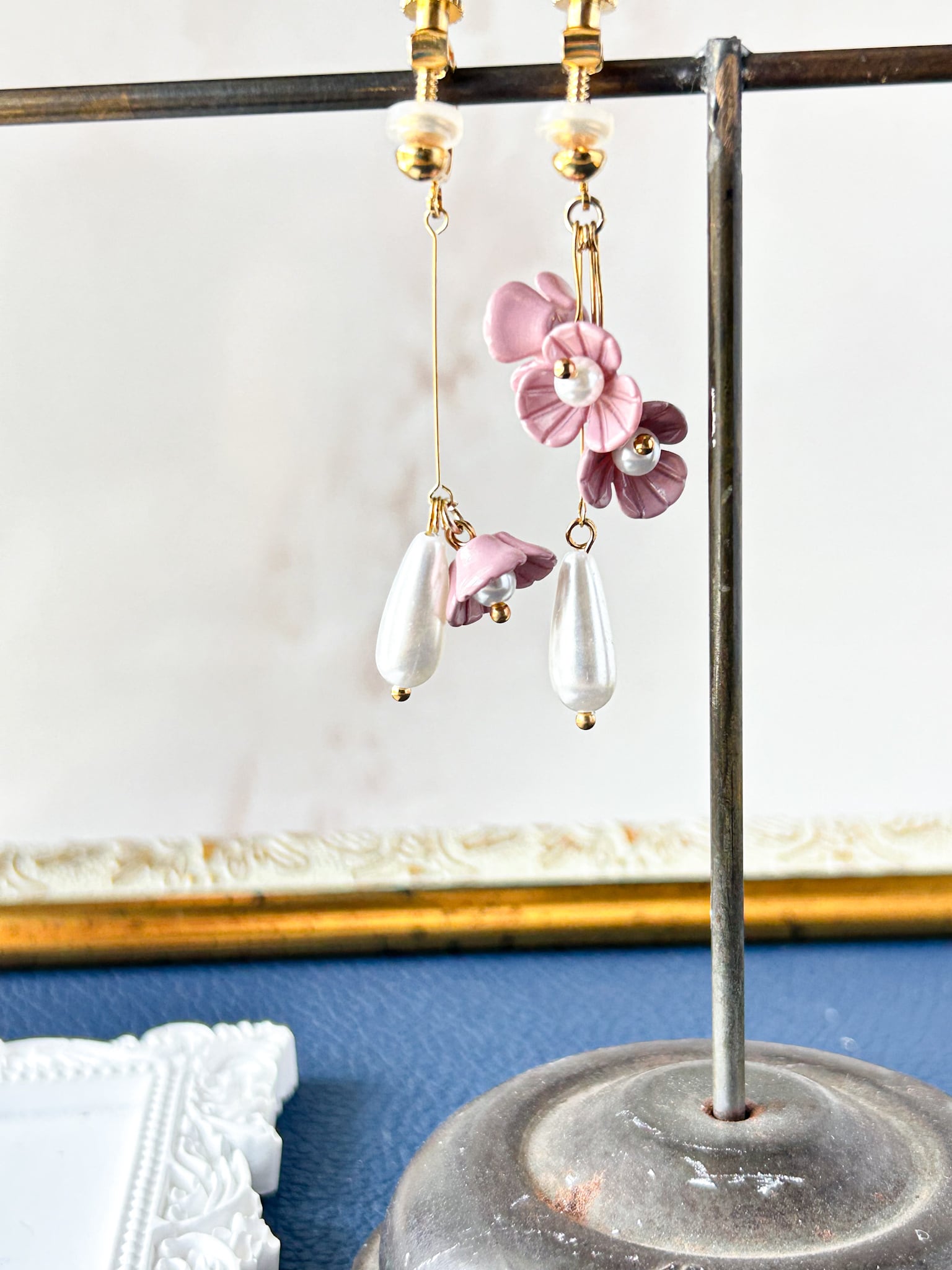 小花 パール アシンメトリー 小ぶりピアス | kuu0122